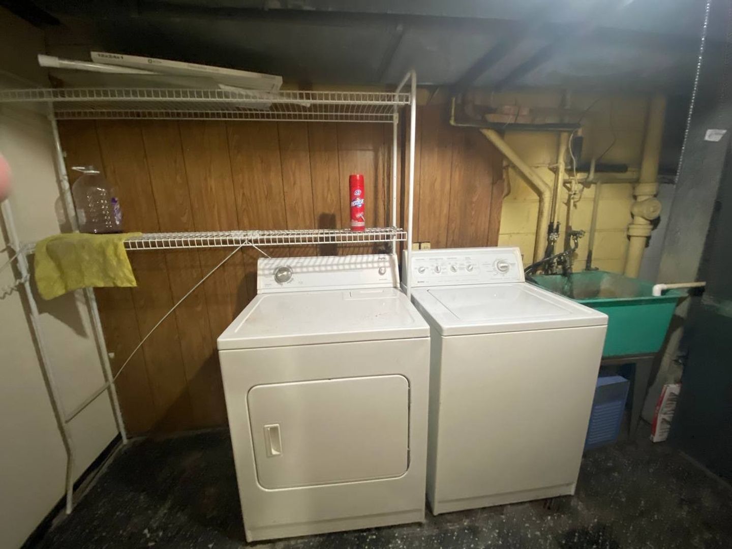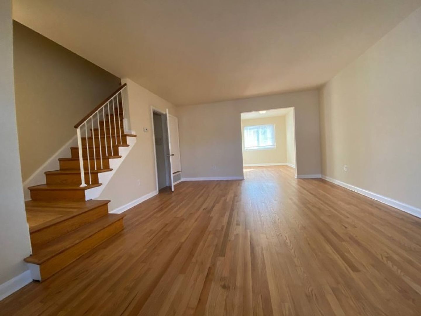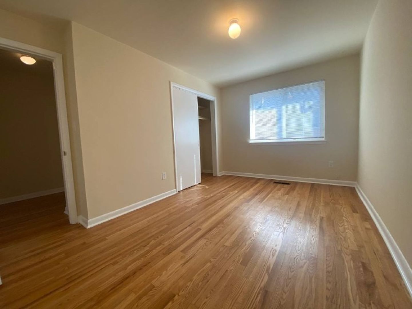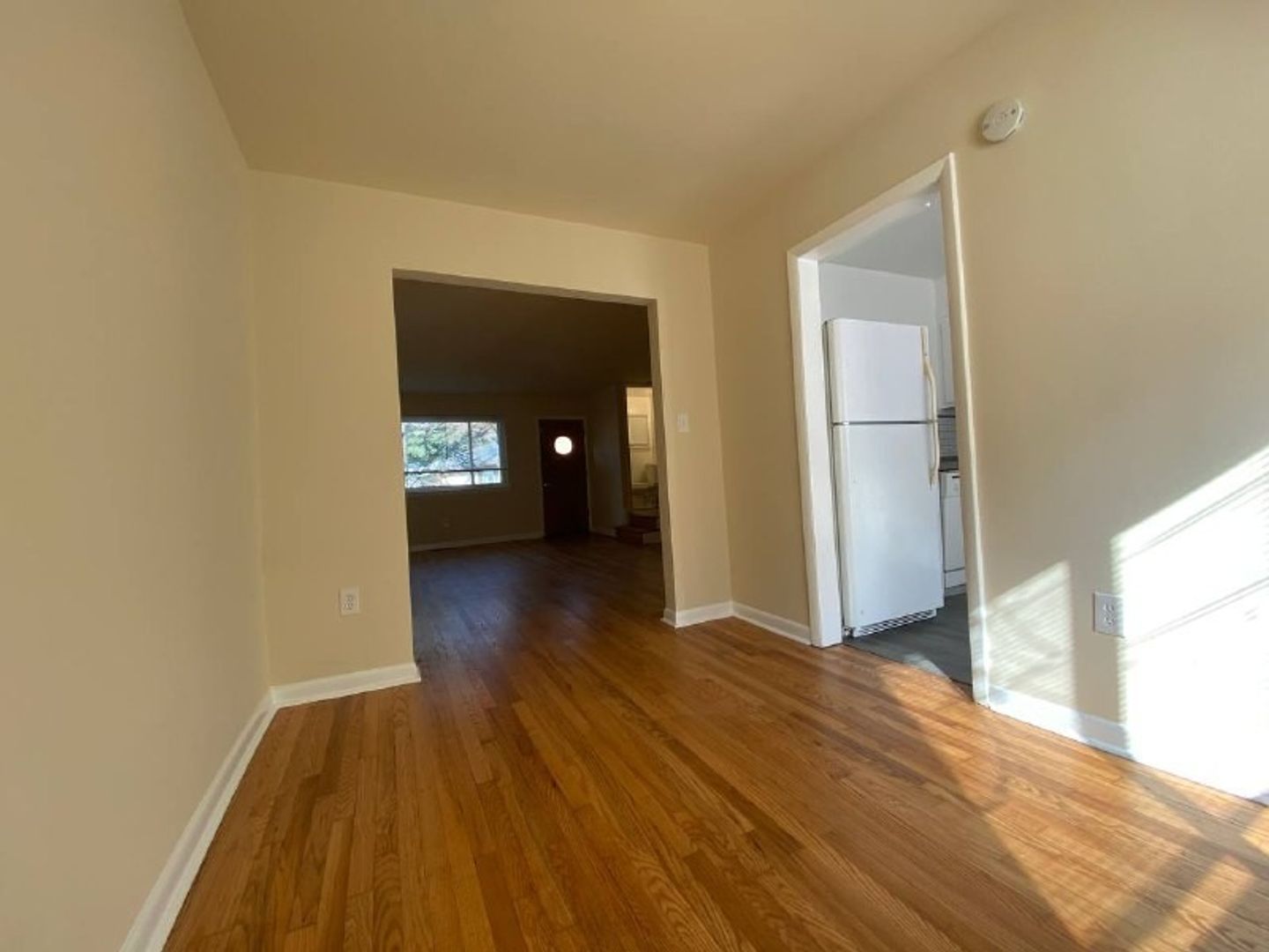 Enter house off of a covered porch into the living room (16x13) with hardwood floors. Separate formal dining room (13x12) located behind the living room also has wood flooring. Fully equipped kitchen includes gas cook top, wall oven, refrigerator, dishwasher and garbage disposal; and now features new flooring. Half bath located just to the left of the entrance of the house. Stairs in living room lead to the second floor. Master bedroom (16x13) is located at the front of the house and has hardwood flooring. Second bedroom (13x12) also has hardwood floors. Full bath located in the hall. Finished basement includes carpeted family room (16x13), carpeted bedroom (13x12) and laundry room.