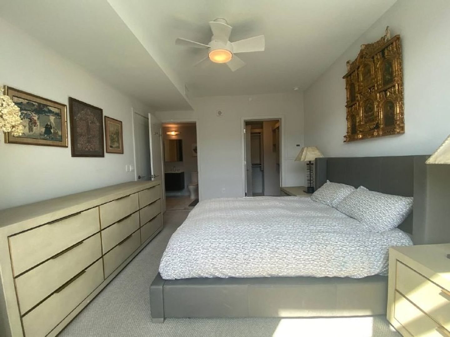 No detail has been spared at this tastefully furnished luxury condo. Enter the unit into the kitchen featuring all modern stainless steel appliances, recessed lighting, and a practical kitchen table and shelving. A closet conceals your own personal washer/dryer units. Large picture windows brighten the unit as you continue into the living area which is fully furnished with writing table, leather sofa and ottomans, coffee table, and an entertainment center complete with Smart TV. The bedroom includes a sumptuous king sized bed, picture windows, drawers, and a walk in closet with ample storage space.