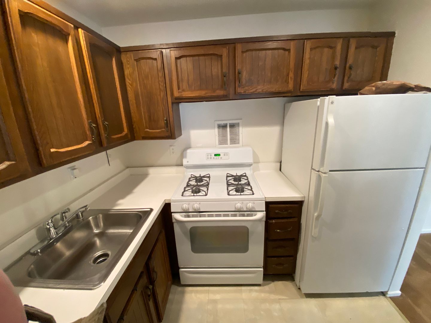 Enter the apartment directly into a carpeted living room (17x15). Separate dining area (8x7) is also carpeted. Kitchen is located next to the dining room and comes fully equipped with a gas range, refrigerator, dishwasher and garbage disposal along with good cabinet space. Carpeted bedroom (15x16) is located off of the living room and includes a walk-in closet. Hall bath found just off of the bedroom. Off street parking is included in the rent. Coin-operated laundry in basement of building along with secured storage space.